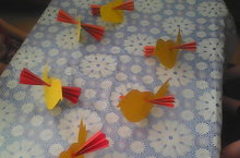 Уртанчылар һәм кечкенәләр төркеме балалары белән туган җиребезнең матурлыгы, байлыгы, туган бистәбез Лезхоз, аның урманнары, җәнлекләре, кошлары турында әңгәмә үткәрдек, матурлыкны күрә һәм саклый белергә өйрәнделәр. Балалар бик теләп һәм кызыксынып кәгазьдән кошлар ясадык.