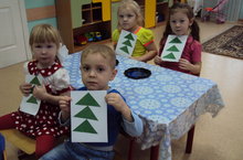 Уртанчылар һәм икенче кечкенәләр катнаш төркеме балалары белән кисеп-ябыштыру шөгелендә бәйрәм чыршысы кисеп ябыштырып эшләдек. Шөгыль балаларга бик ошады, кызыксынып эшләделәр. Чыршы турында,шигырьләрне һәм җырларны искә төшерделәр.
