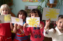 Инде җәй айларына аяк басуга карамастан, көннәр һаман салкынча тора. Балалар көннәр матурлануын теләп, "Кояш, чык!" уенын уйнадылар, кәгазьне ертып ябыштыру алымы кулланып, Кояш ясадылар.