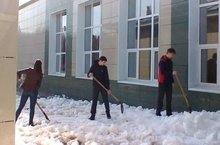 В рамках акции "Добрая земля" сегодня учащиеся старших классов убирали территорию школы.