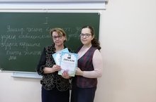 Ученица 9 класса Федорова Валерия вместе с руководителем, учителем родного языка и литературы Башировой М.Н., участвовали в конкурсе «Районара Мэхдиев укулары»