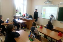 В рамках акции "Помоги первокласснику прийти в школу" в 1 классе прошел классный час в форме викторины. Учащиеся вспомнили дорожные знаки, правила и составили безопасный план дороги домой и в школу