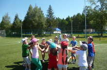 Сегодня мы встретились с детьми из пришкольно-оздоровительного лагеря Сабабашской ООШ. На торжественной линейке открытия слета все дружно спели гимн "Кояшкай", дети показали свои концертные номера. Затем дети соревновались в бегах на короткую и длинную дистанцию, эстафете, футбольной игре. Был организован конкурс стеенгазет. На линейке закрытия победители соревнований были награждены грамотами. Слет закончился концертными номерами и общим танцем. После обеда дети учпствовали в игре-викторине "В гостях у феи вежливости"