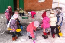 Эшкә уңай караш тәрбияләү, кызыксыну уяту максатыннан мәйданчыктагы карны тараттык.Күмәкләшеп эшләргә өйрәндек.