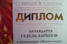 Ученик 4 класса Зарипов Гадель участвовал в XV открытом Республиканском телевизионном молодежном фестивале эстрадного искусства Созвездие-йолдызлык. Фестиваль посвящен 70-летию Победы в Великой Отечественной войне. Гадель награжден дипломом в номинации "Вокал-соло" (2-я младшая группа) руководитель Хадиева Г.Н.