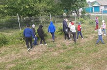 Лагерьда йөрүче укучылар мәктәп яны территориясен чүп - чарлардан арындырдылар.