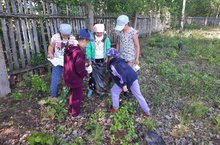 "Чиста торак бәйгесе" укучыларыбыз территорияне чистарту эшендә.
