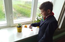 3 нче сыйныф укучылары тәрәзә төбендә матур - матур гөлләр үстерү буенча шөгыльләнәләр.