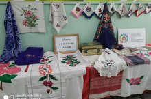 Татарстанда туган телләр һәм халыклар бердәмлеге елы уңаеннан укучылар өчен "Әбием сандыгындагы серләр" исемле күргәзмә куелды. Татар халкының чигүле эшләнмәләре куелды. Татар хатын - кызларының баш киемнәре дә чигеп эшләнгән.