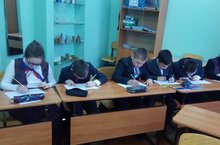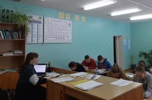 Учащиеся 9 класса в дополнительном заятии по химии.