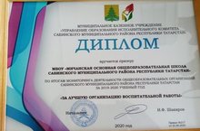 2019-2020 нче уку елы нәтиҗәләре буенча тәрбия эшен оештыруда "За лучшую организацию воспитательной работы" дипломы белән буләкләндек.