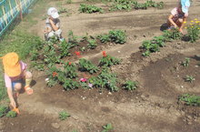 12.07.2013 Чәчәкләрне үстергәндә балалар да читтә калмыйлар, апаларына чәчәк араларын йомшартырга булышалар.