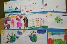 Бүген урамда асфальтка "Мин җәйне яратам" дигән темага рәсем ясадык.