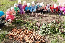 Үзебез яз көне утыртып, җәй көне карап үстергән уңышны җыюы бик тә күңелле булды! Яз көне тәрәзә төбендә үстереп, ашка салып ашаган идек витамин-суганны.