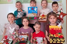 В тематической неделе “Рукотворный мир. Вторичное использование ресурсов” в МБДОУ “Олуязский детский сад «Чачка» был объявлен конкурс поделок, посвященный Году защитника Отечества и 80-летия Великой Победы. Поделки были выполнены из разного материала: из картона, бумаги и фоамирана, спичек, макаронных изделий, обоев и текстиля. Все поделки, представленные на конкурс, отражают День Победы в Великой Отечественной войне. Из этих конкурсных работ в детском саду оформлен патриотический уголок «Победа. Память»