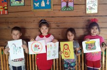 «Россия- зур дәүләт. Мәскәү- башкала.» атнасы уңаеннан, дымка, хохлома, жёстов, городец бизәкләреннән рәсем күргәзмәсе үткәрелде. Балалар бик матур рәсемнәр ясап килделәр. Галиуллина Сөмбел “гжель,золотая хохлома” бизәкләреннән сувенирлар да алып килгән иде.