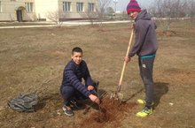 С целью озеленения территории колледжа, продолжается посадка деревьев. Силами студентов посажено более 100 саженцев вишни, яблони, сливы, смородины.