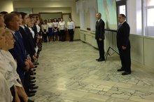 На утренней линейке директор колледжа поздравил весь коллектив с праздником. Пожелал здоровья, терпения и долгих лет жизни. 05.10.2016
