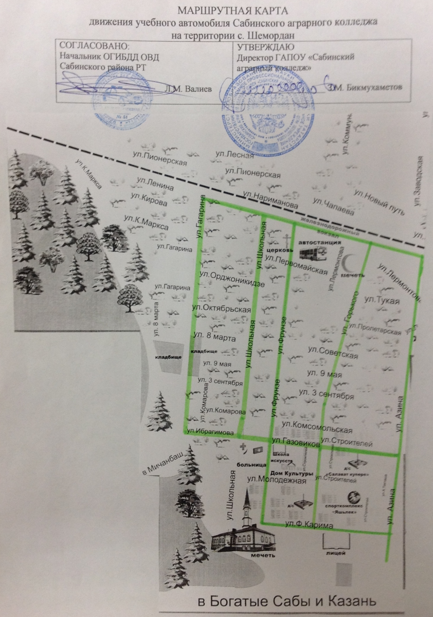 Маршрутная карта движения учебного автомобиля на территории с. Шемордан
