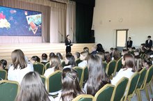 Обучающиеся незамедлительно покинули свои кабинеты и построились на стоянке школы под руководством своих учителей.