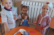 Балаларыбыз бигрәк тә яратып "Шифаханә" сюжетлы- рольле уенын уйныйлар. Алар уенчык җәнлекләрне, курчакларны "дәвалыйлар". Уенчык медицина жайланмалары ярдәмендә "авыруларны" тыңлап карыйлар, температураларын үлчиләр, укол ясыйлар. Шушы уен аша балалар табибка барырга курыкмаска кирәклеген аңлыйлар. -
