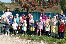 Көзге авыл буйлап сәяхәт иткәндә балалар әйләнә-тирә турында белемнәрен арттырдылар. Көзге матурлык балаларда соклану, гаҗәпләнү уятты. Балалар табигатьтәге көзге үзгәрешләрне, мәсәлән, сары төскә кергән яфракларның коелуын,бакчалардагы җиләк -җимеш: алма, слива, шомырт,миләш агачларын күзәттеләр. Көзнең ни өчен «алтын» дип аталуын белделәр һәм табигатьтә үз-үзеңне тотуның куркынычсызлык кагыйдәләрен беркеттеләр. Авылдашыбыз Зарипова Әлфия апа балаларны капка төбендә көз күчтәнәче - алма белән каршы алды. Матур,тәмле алмалар өчен Әлфия апабызга рәхмәт әйтеп,истәлеккә фотога төшеп бакчабызга юл тоттык.. -