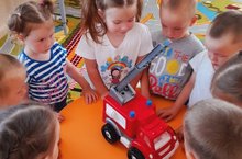 Зурлар төркем балалары белән бергә янгын куркынычсызлыгы чаралары, янган бинада яки урманда үз-үзеңне дөрес тоту, ут белән уеннар нәтиҗәләре турында әңгәмә үткәрелде. Ә янгын балаларга янгын сүндерү машинасында булган янгын сүндерү чараларын күрделәр, балаларга янгын сүндерүченең хәрби экипировкасын сынап карарга һәм тотарга ярдәм иттек.