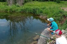 Любимое занятие мальчиков-рыбалка. Ловили на удочки, ловили рыбу на берегу озера.