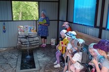 Сегодня мы с детьми организовали поход к реке Мише. Сначала мы наблюдали за окружающей природой, течением реки Миши, играли в игры. Потом угощали тамлушками.