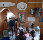 Бүген бәйрәм көн-җомга көн итеп балалар белән Аллаһ йортына - мәчеткә экскурсиягә бардык. Безнең кскурсиянең максаты - балаларда мәчет турында белемнәр формалаштыру, мәчет һәм ислам диннәре турындагы гади күзаллауларны үстерү иде. Мәчеттә үз-үзеңне тоту культурасы нигезләрен формалаштыру. Мәчеттә безне авылыбызның имамы Рушан хәзрәт каршы алды. Ул балаларны мәчет белән таныштырды, мәчеткә килер алдыннан мөселман кешесенә нәрсә эшләргә кирәклеге турында сөйләде. Мәчеткә килүче хатын-кызларның һәм ир-атларның киеме нинди булырга тиешлеге турында аңлатты. Мәчеттә бәйрәм һәм эш көннәрендә намаз укыганнарын сөйләде.Балаларга биш вакыт намаз барлыгын аңлатты һәм шул намазларның вакытлары белән таныштырды. Балаларыбыз хәзрәткә үзләренең белгән догаларын яттан сөйләп күрсәттеләр. Әңгәмә ахырында Рушан хәзрәт балаларга тәмле туңдырма өләште. Без рәхмәтебезне әйтеп бакчабызга кайттык һәм тәмле туңдырмадан авыз иттек.