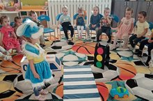 Балаларның урамда һәм юлларда үзләрен хәвефсез тоту кагыйдәләре турында белемнәрен ныгытып, җәяүлеләр өчен булган кагыйдәләр белән таныштыруны дәвам итеп зурлар төркемендә әлеге темага эшчәнлек үткәрелде.