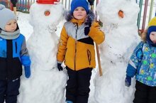 Сегодня у нас радость - на игровую площадку выпало много снега. Почему бы нам не слепить снеговика? А чтобы ему не было одиноко мы слепили ему друга и поставили рядом.