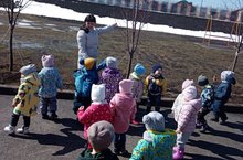 Бүген кечкенәләр торкемендә тәрбияләнүче балалар язгы табигатькә чыгып, карлар эрүе, күк йөзе, агачларның үзгәрүе белән танышты.