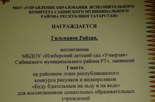 "Буду бдительным на льду и на воде" конкурсында безнең балалар бакчасыннан Гильманов Рәйхан, аерым номинация буенча җиңү яулады. Котлыйбыз!