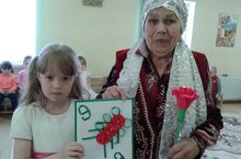 Бәйрәм уңаеннан, бүген балалар бакчасында, авылыбызның иң мөхтәрәм кешесе, хөрмәтле тыл ветераны Маһирә апа белән җылы эчтәлекле очрашу булып үтте. Маһирә апа балаларга авыр сугыш еллары, ачты- туклы тормышлары, кияргә матур күлмәкләре, ашарга 1 телем икмәкләре дә булмавы турында сөйләде. Балалар аның сөйләгәнен тын да алмый тыңлап утырдылар. Тыңламый мөмкин дә түгел. Инде 9 нчы дистәне ваклаган, шул ук вакытта оста итеп җырлап та җибәрүче, очып кына йөрүче Маһирә апа гомер буе укытучы булып эшләгән. Балалар аның белән бергә җырладылар, биеделәр, шигырьләрен сөйләделәр һәм Маһирә апага бәйрәм бүләге тапшырдылар.