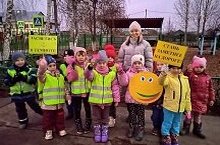 Сегодня воспитатель подготовительной группы Садыйкова М.Н.провела акцию по безопасности детей на дорогах.