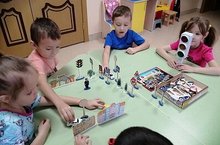 Игра- пособие "Дорожные знаки" помогает запомнить значения самых распространённых знаков дорожного движения, моделировать реальные дорожные ситуации с участием машинок и пешеходов