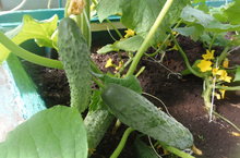Огурец растёт на грядке,