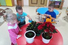 Воспитатель группы знакомит детей с правилами ухода за растениями, о том, что растениям необходима вода и свет, что за ними нужно ухаживать, поливать, опрыскивать.