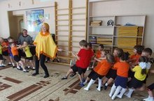 В празднике участвовали 3 возрастные группы: подготовительная, старшая и средняя. Ребята отправились в страну сказок, чтобы играть и посоревноваться с её волшебными жителями. С тремя поросятами поиграли в игру «Найди свой дом». Чтобы «вытянуть» репку, команды тянули за концы верёвку. Ребята помогли зайцу стать смелым, раздобыв ему морковку-храбрости в игре «Возьми морковку». Поиграли в кегли в сказке «Курочка Ряба». А также убедили волка, что лиса хитрая и его часто обманывает в игре «Наездники». Царевне – лягушке показали свою ловкость и сноровку, бросая мячики в корзину. А с солдатом поиграли в военную игру. Так, преодолев все препятствия, ребята получили главный приз – «витамин здоровья».