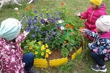 Все цветочки разные-белые и красные,Жёлтые и синие- все цветы красивые.Как прекрасен каждый цветЛучше нашей клумбы нет! -