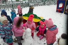 Бакчабызга йөрүче иң кечкенә нәниләребез, үзләренең тәрбияче апалары белән берлектә, беренче кар бабайларын ясадылар.