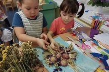 Дети старшей группы сделали картину из колосьев и сухих цветов.
