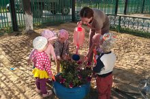 Дать детям первоначальные знания о садовых растениях, условиях роста и ухода. Учить детей выполнять коллективную работу. Воспитывать желание участвовать в уходе за растениями.