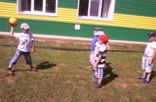 Мальчики подготовительной группы с удовольствием играют в игру "Вышибалы" 27.07.2017