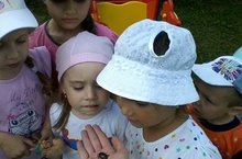 Балаларга хезмәт тәрбиясе бирү, яшелчә һәм чәчәкләрнең үсүен күзәтүне күзаллап балалар бакчасында, балалар катнашында эш алып барыла. Һәр төркем үзенең мәйданчыгында чәчәкләр үстерә, коры көннәрдә су сибеп, төпләрен йомшартып, чүп үләнләрен утыйлар. Чәчәкләрне танып белергә өйрәнәләр. Зурлар төркеме кызлары бик тырышып чүп утыйлар.