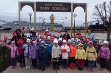 Ветераннарыбызның Бөек Ватан сугышында күрсәткән батырлыклары турында белемнәрен ныгыту максатыннан,мәктәпкә әзерлек һәм зурлар төркеме балалары Җиңү паркына экскурсиягә бардылар.Балалар сугыш кырында ятып калган солдатлар рәсемен карадылар,паровоз,машина белән кызыксындылар.
