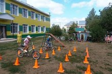 Ребята соревновались в знаниях по правилам дорожного движения, проверили знают ли они виды транспортных средств, собрали из гимнастических палок и обручей автомобиль, вспомнили сигналы светофора, участвовали в беседе «Как правильно управлять велосипедом» и участвовали в конкурсе «Извилистая дорога», где показали своё умение ездить на велосипедах.