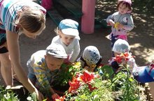 Цель: побуждать детей радоваться цветам, познакомить с названием цветка, с особенностями строения: стебель, листья, цветок.