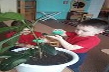 Дети средней группы любят ухаживать за растениями своего зелёного уголка: протирают листочки, поливают цветы под наблюдением воспитателей